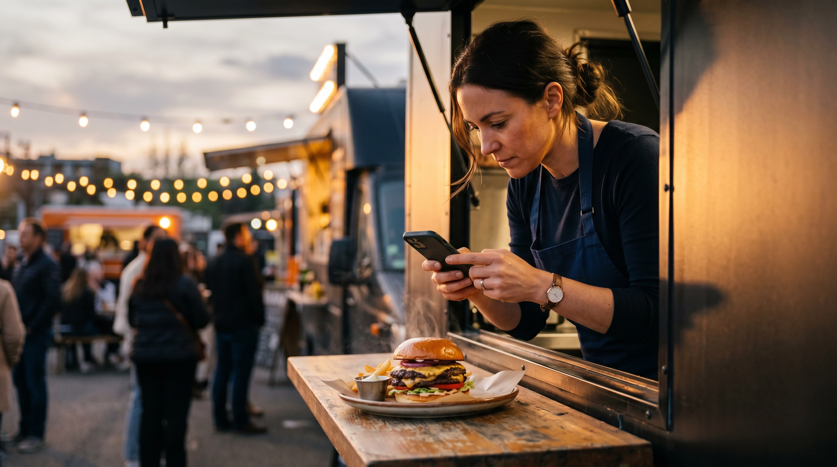 The catch: traditional food photography advice doesn't fit a truck. You can't move your kitchen to north-window light. You can't wait for the photographer's schedule. You can't carry a softbox to a Tuesday lunch service. So we'll work with the constraints, not against them.